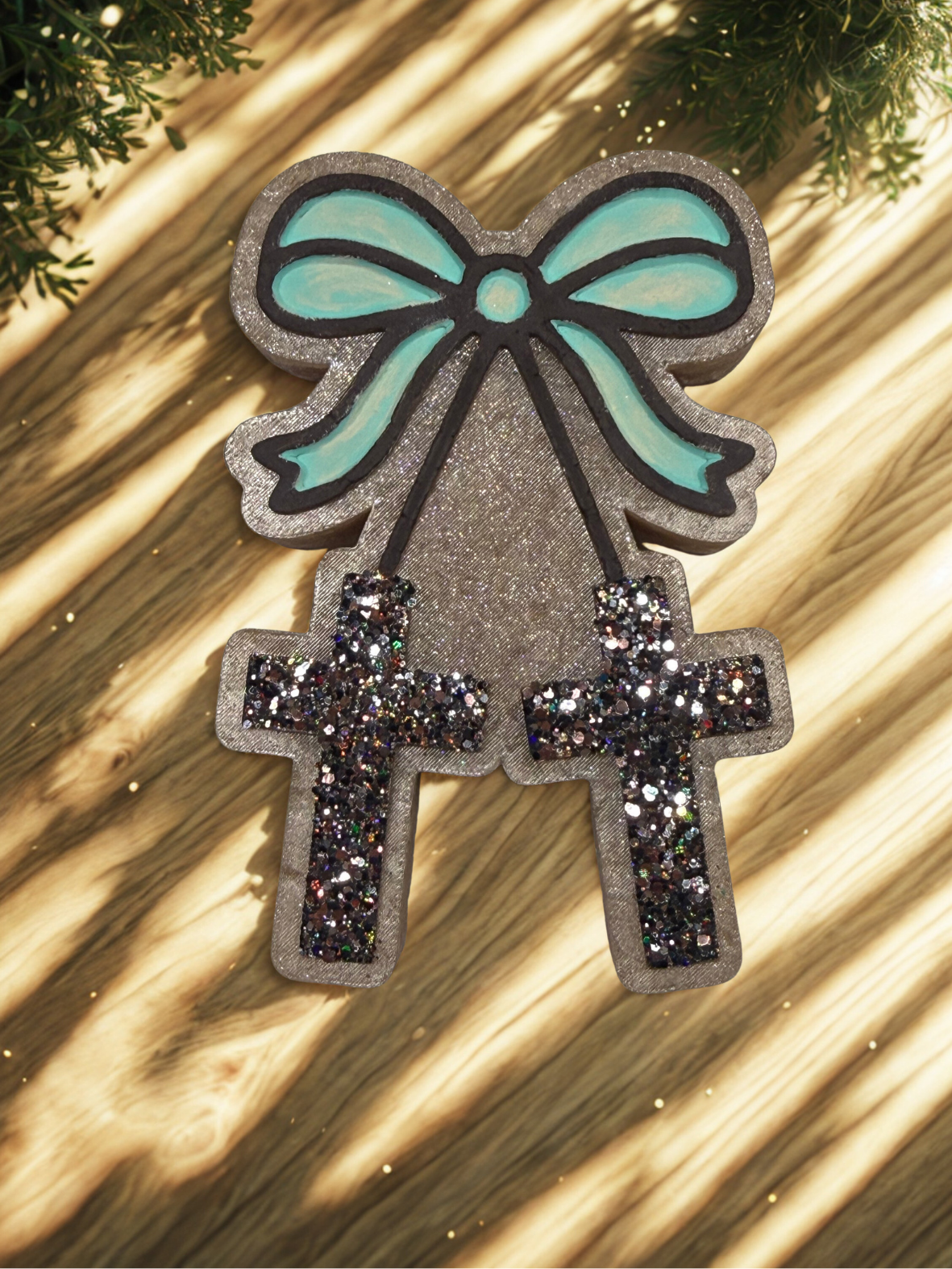 Add a little faith and flair to your space with this freshie. Featuring a cute bow at the top and a cross below, this design gives the same playful, charming vibe as our “Cherries” freshie — but with a touch of inspiration and grace.