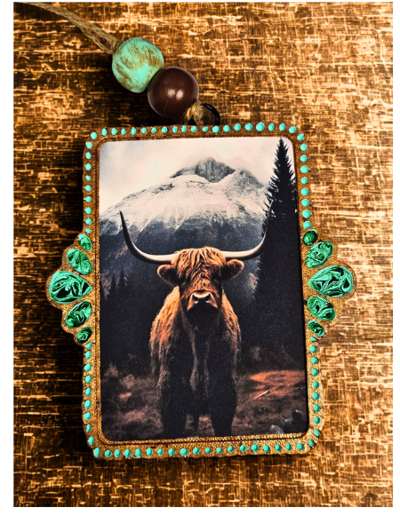 Bring a little western charm to your ride with this striking Longhorn Mountain Freshie.