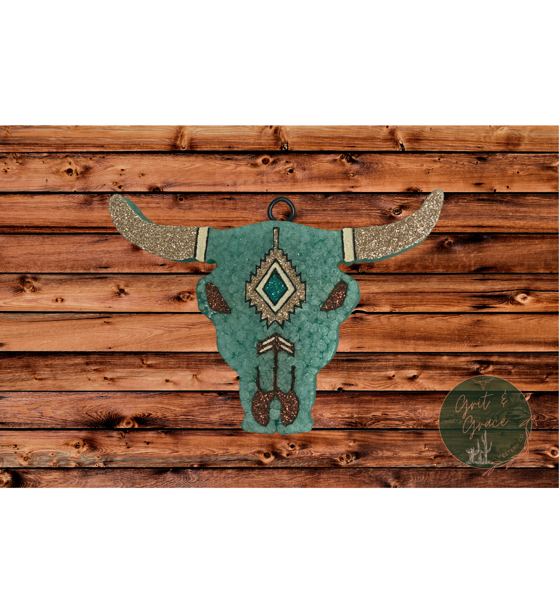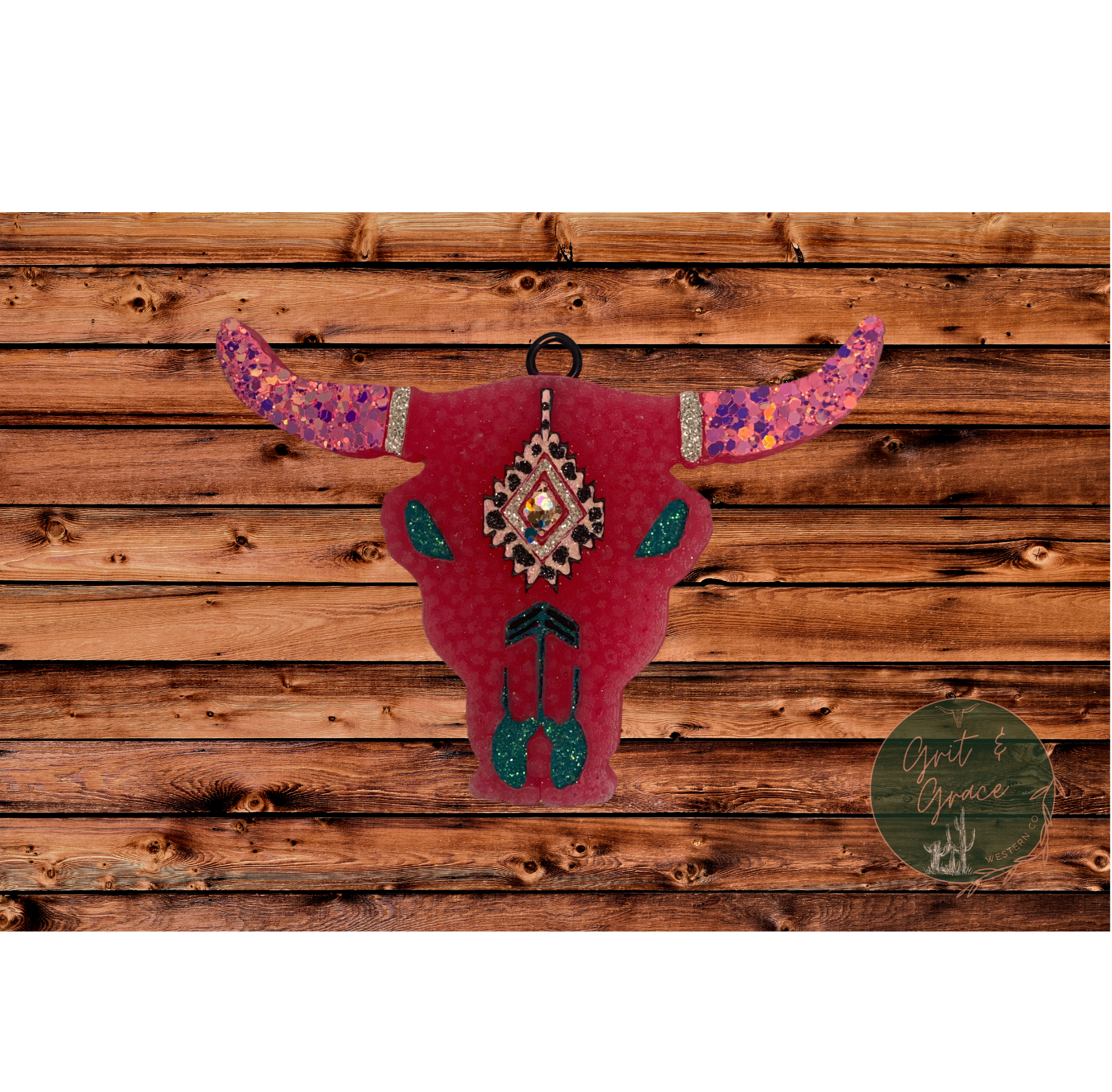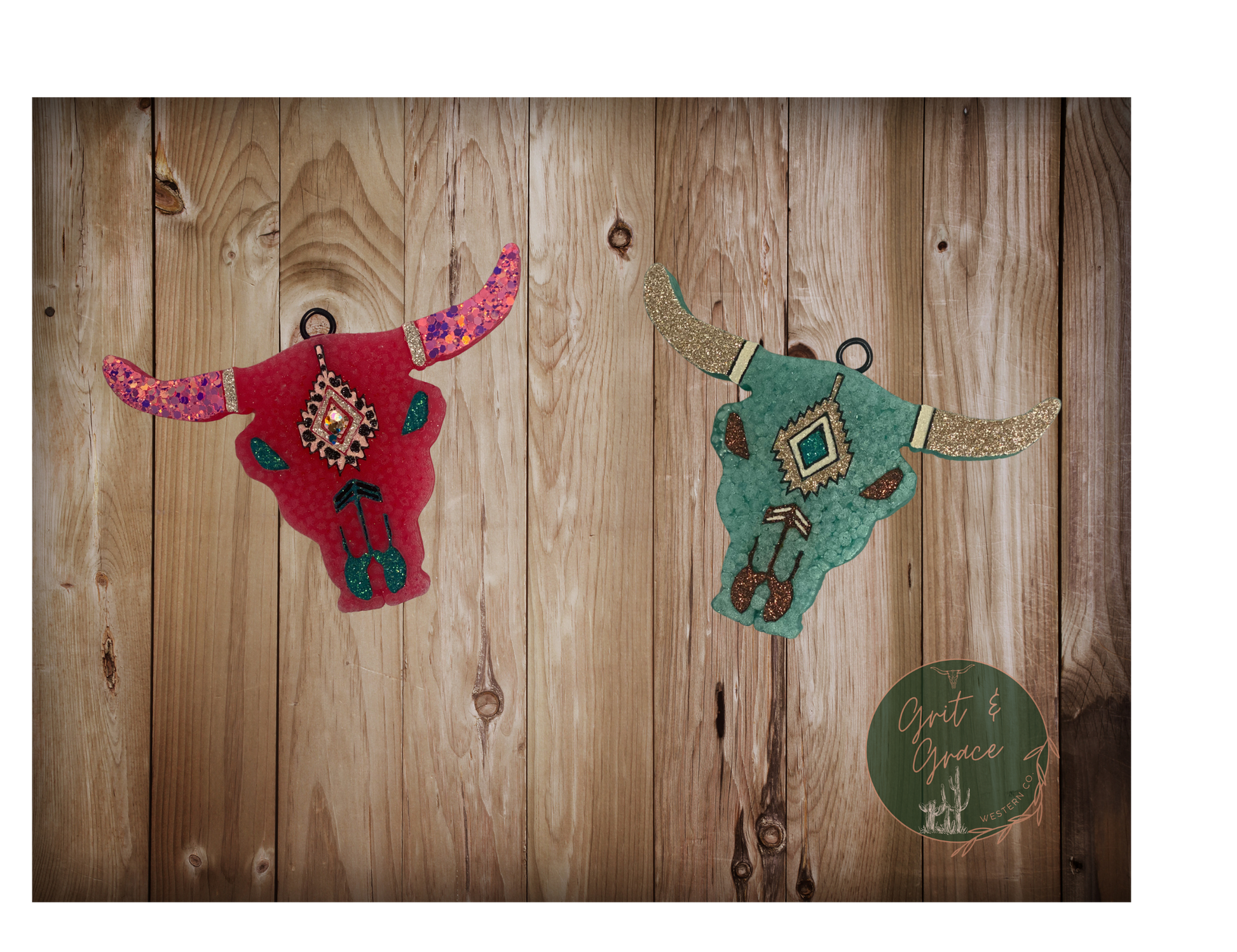 Ready to steer your car (or your life) back in the right direction — at least smell-wise? Meet the Steer Me Right freshie: a glitter-dusted bull skull that's one part Western glam, one part "I totally have my life together" illusion.